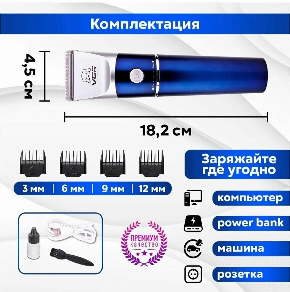 Purpose: for hair cutting, type: trimmer, minimum cutting length: 3 mm, maximum cutting length: 12 mm, blade material: stainless steel