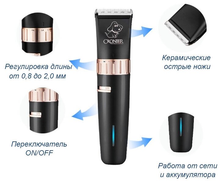 Purpose: for grooming, for cutting, animal type: cats, dogs, coat type: long-haired, short-haired, any hair, with normal hair, power source: battery, motor type: rotary