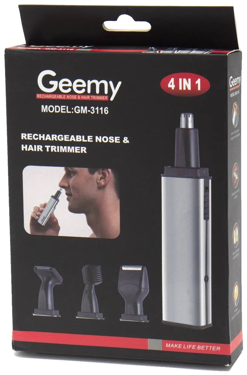 Description: Purpose: for beard and mustache, for cutting nose and ears, type: trimmer, power supply: autonomous, battery type: own battery, blade material: stainless steel, length adjustment method: changing attachments, special