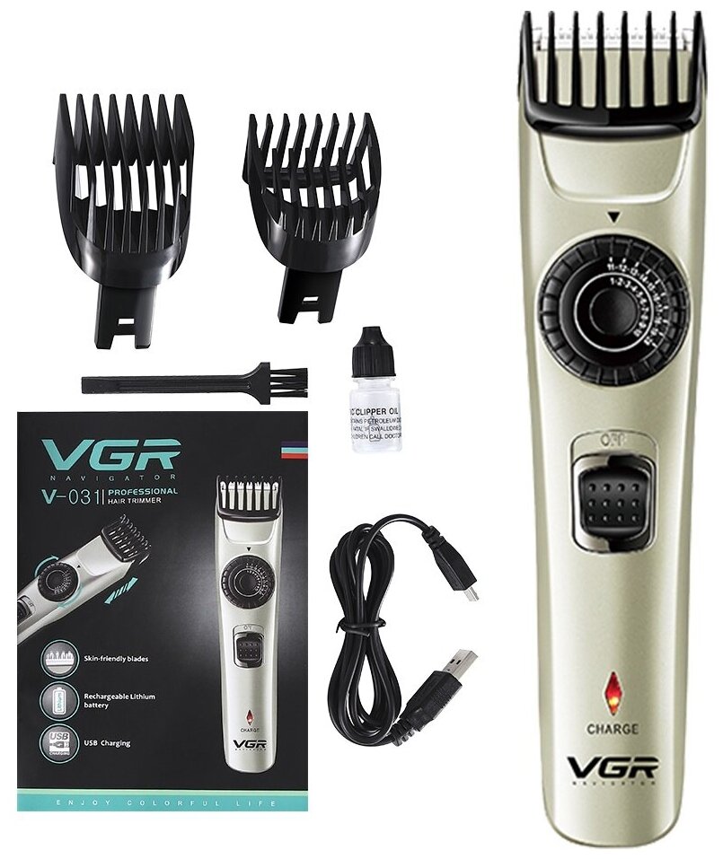Purpose: for hair cutting, type: hair clipper, power: autonomous/from the mains, length adjustment method: changing attachments and adjustment, features: charging indicator, included: scissors, case, number of attachments: 2, in�
