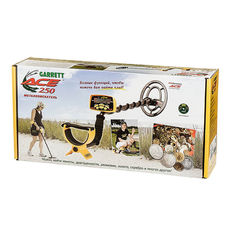 Garrett ACE 250 metal detector, 6.5"x9" PROformance coil, instructions in Russian, DVD in English