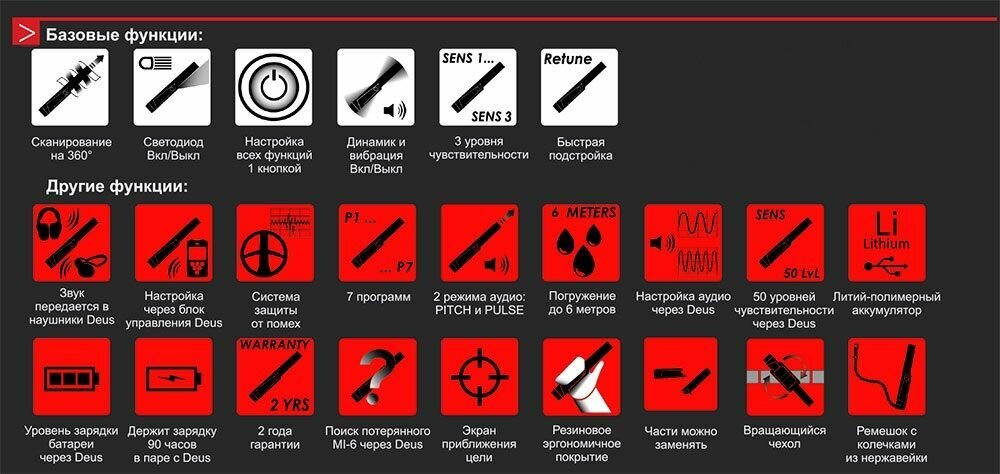 Pinpointer, ground, underwater, VLF, frequency 12 kHz, weight 0.18 kg, speaker