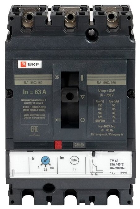 Automatic switch EKF VA-99C/160 3P thermomagnetic 36kA