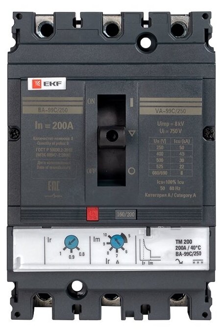 Automatic switch EKF VA-99C/250 3P thermomagnetic 45kA