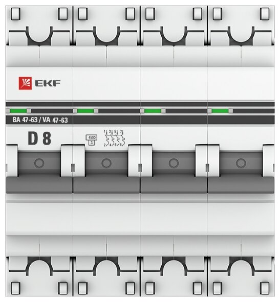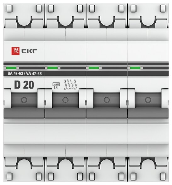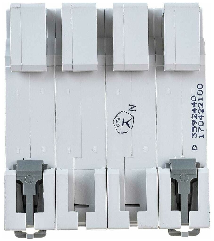 Type: circuit breaker, breaking capacity: 4.5 kA, rated voltage: 380 V, voltage type: AC, trip type: D, protection class: IP20, DIN rail mounting