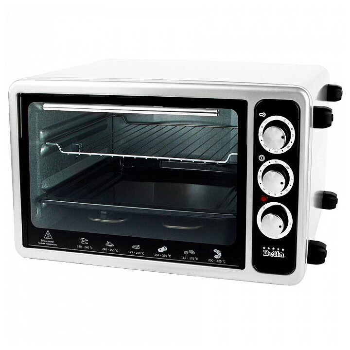 Modes: top grill, top heating, top+bottom heating, bottom heating, chamber volume: 40 l, features: timer, control: mechanical, equipment: spit, round baking sheet, baking sheet, grill, skewers, type: mini