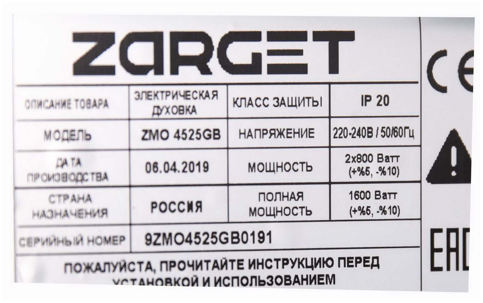 Modes: top heating, top+bottom heating, convection, bottom heating, chamber volume: 45 l, features: internal lighting, timer, control: mechanical, equipment: round baking sheet, baking sheet, grid, width