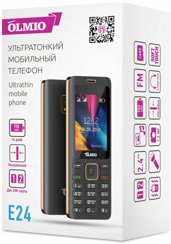 Screen diagonal: 2.40, number of main cameras: 1, battery capacity: 900 mAh, screen resolution: 320×240, memory card slot