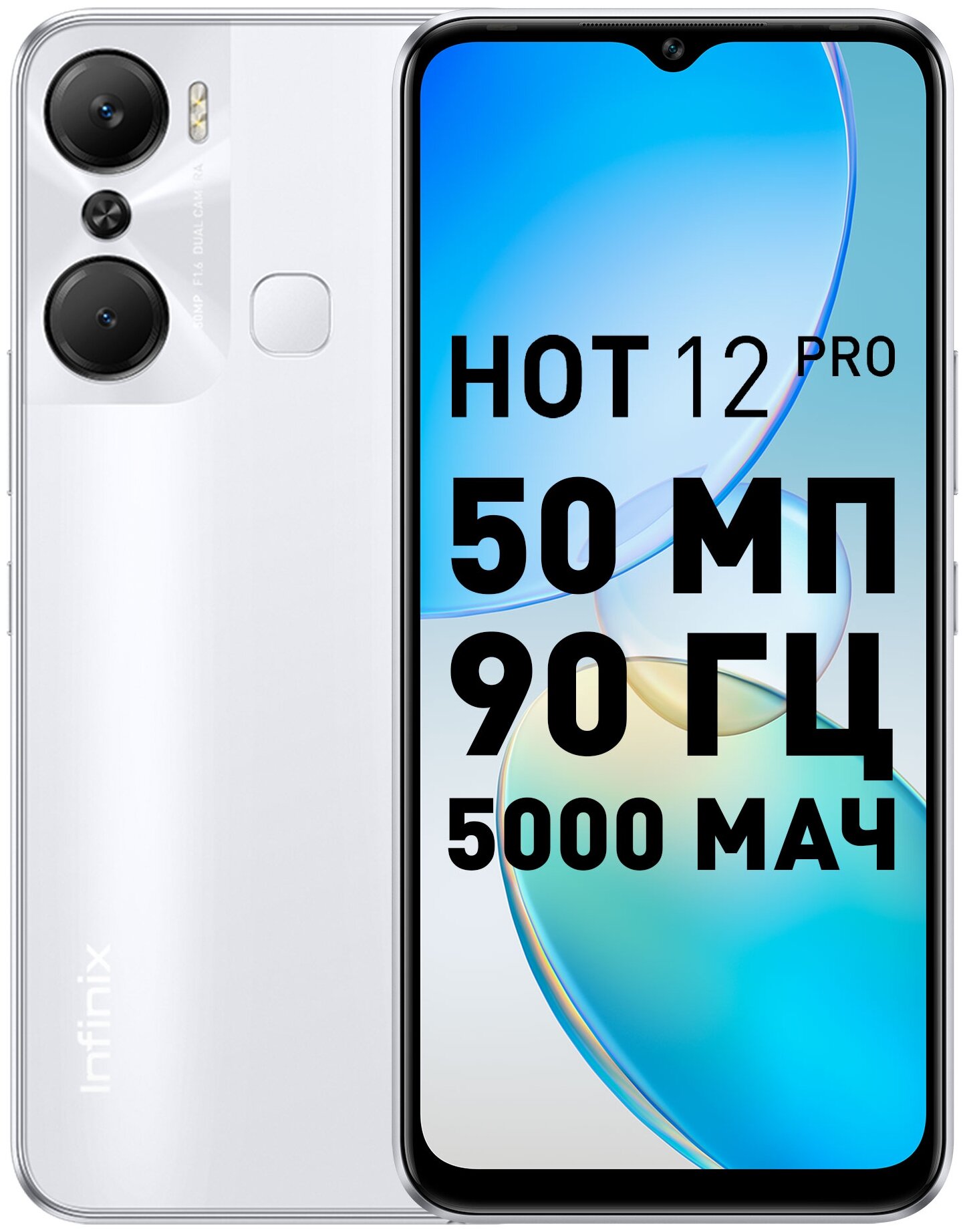 Screen diagonal: 6.60", number of main cameras: 2, memory: 128 GB, RAM: 8 GB, battery capacity: 5000 mAh, screen resolution: 1612x720, screen refresh rate: 90 Hz, memory card slot