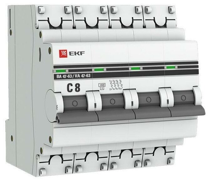 Switch automatic modular 4p C 8A 4.5 kA VA 47-63 PROxima EKF mcb4763-4-08C-pro, 1 pc