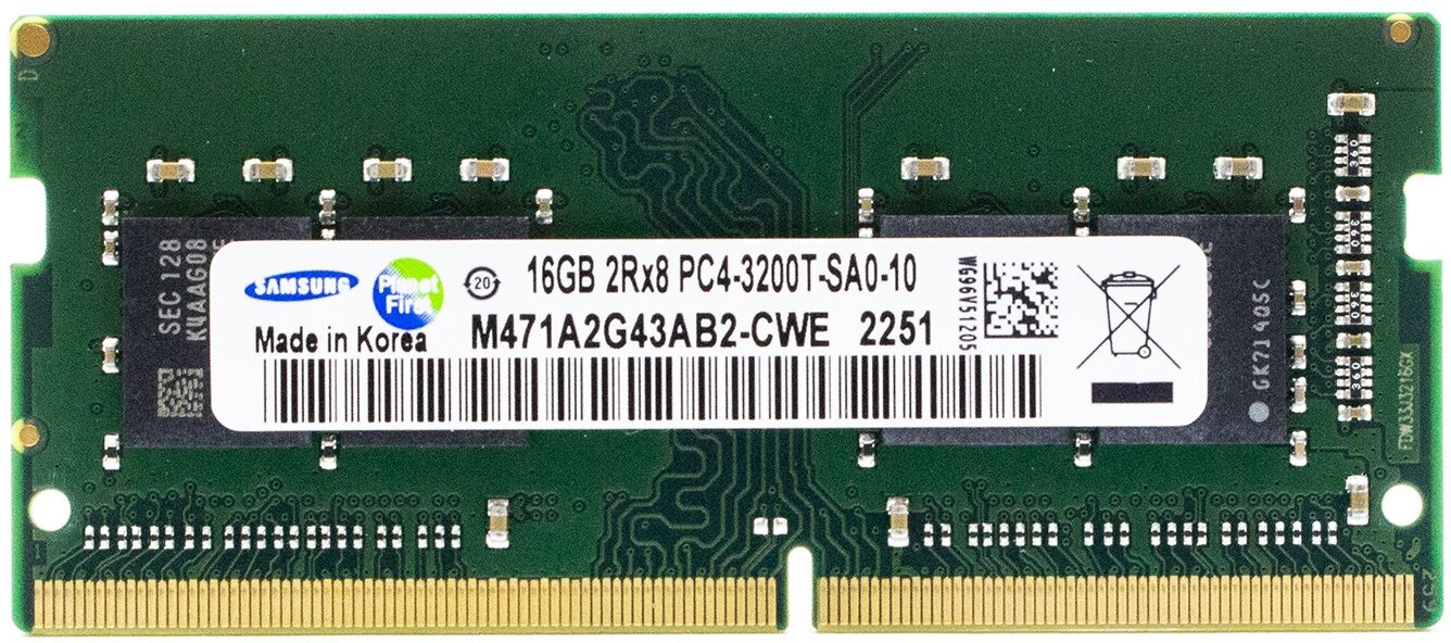 Type: DDR4, capacity of one module: 16 GB, clock frequency: 3200 MHz, form factor: SODIMM, number of modules included: 1 pc., CL: 22