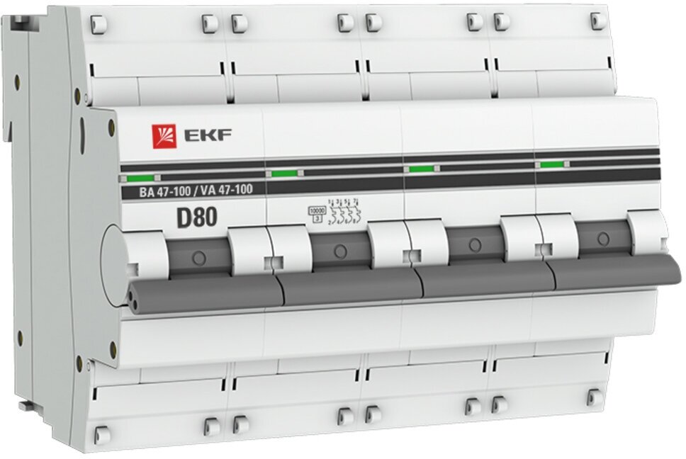 Switch automatic modular 4p D 80A 10kA VA 47-100 PROxima EKF mcb47100-4-80D-pro, 1 pc