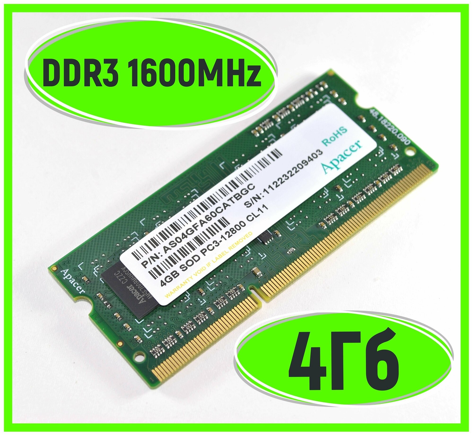 For Apacer laptop DDR3 4GB 1600MHz SO-DIMM PC3-12800 CL11 1.5V Retail
