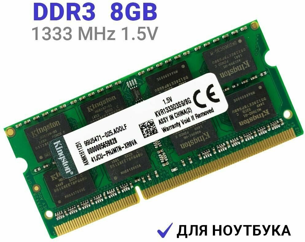 Type: DDR3, capacity of one module: 8 GB, clock frequency: 1333 MHz, form factor: SODIMM, number of modules included: 1 pcs., CL: 9, features: Unregistered