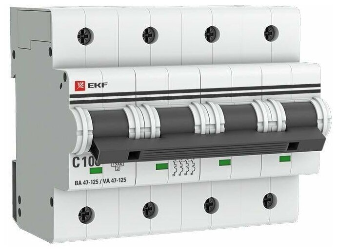 Switch automatic modular 4p C 100A 15kA VA 47-125 PROxima EKF mcb47125-4-100C, 1 pc