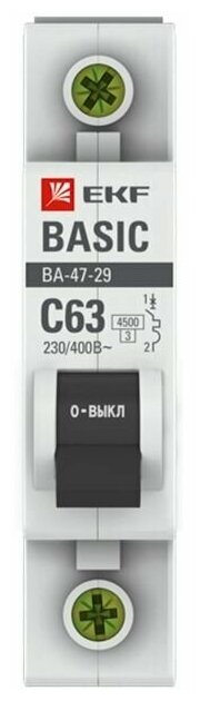 modular 1p C 63A 4.5kA VA 47-29 Basic EKF mcb4729-1-63C