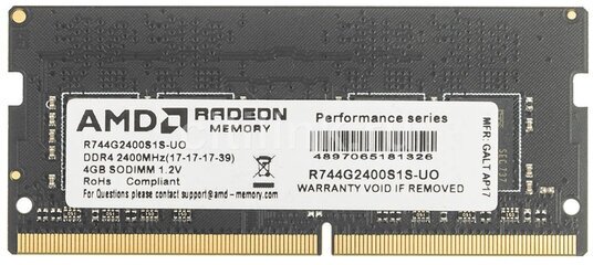 Type: DDR4, capacity of one module: 4 GB, clock frequency: 2400 MHz, form factor: SODIMM, number of modules included: 1 pc., CL: 17, features: Unregistered