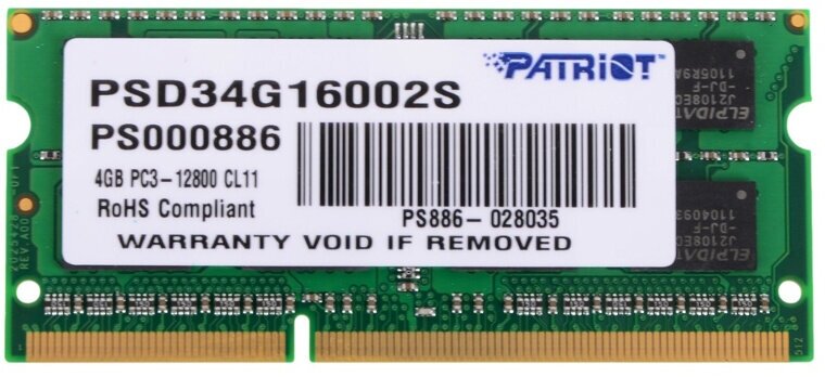 PATRIOT PSD34G16002S DDR3 - 4GB 1600, SO-DIMM