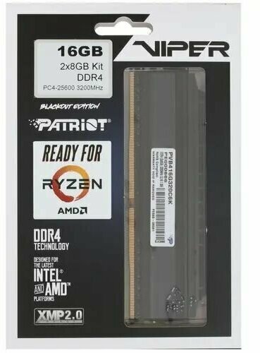 Patriot Memory VIPER 4 BLACKOUT 16GB 8GB x 2pcs DDR4 3200MHz DIMM CL16 PVB416G320C6K