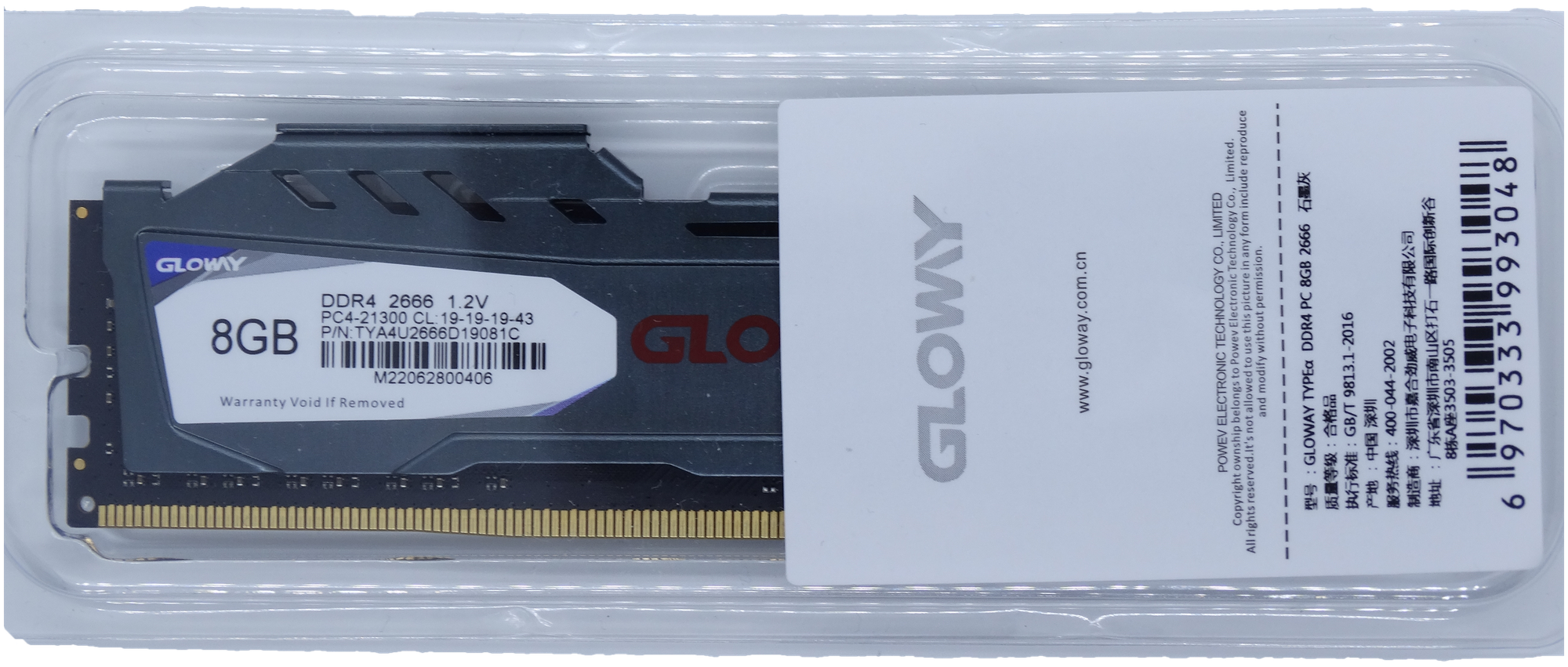 Gloway RAM 8GB DDR4 2666MHz DIMM CL19 TYA4U2666D19081C TYPEa heatsink