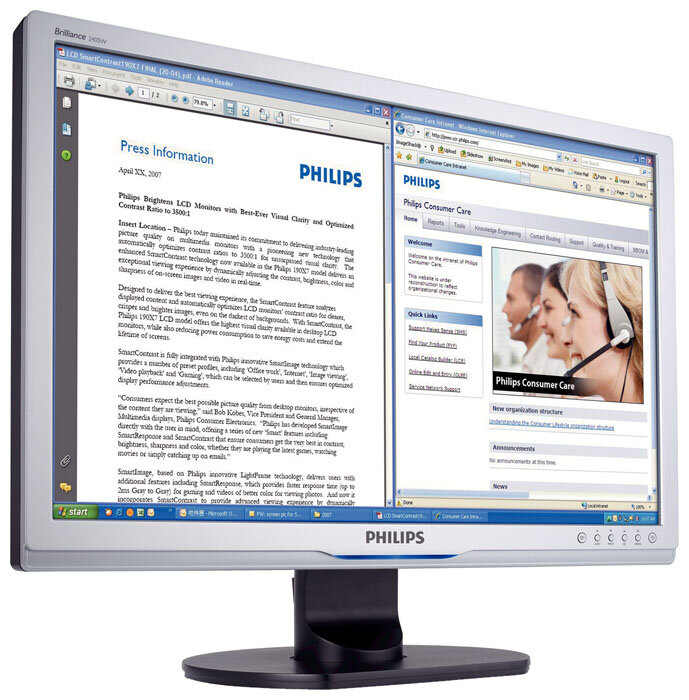 Automatic switching between widescreen and 4:3 format; min. line frequency: 24 kHz; Max. line frequency: 94 kHz; min. frame rate: 48 Hz; HDCP support in DVI interface; plug'n'Play: DDC CI; Energy consumption: EPA Energy