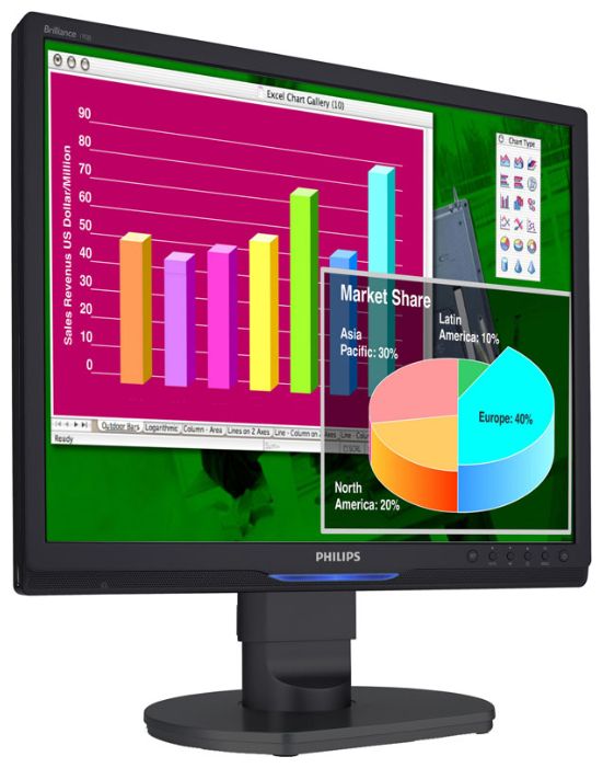 Diagonal detail: 19 , screen matrix type: TN, max. resolution: 1280x1024, response time: 5 ms, aspect ratio: 5:4, brightness: 300 cd/m2, features: built-in speakers, height adjustment, video interfaces: DVI-D input, VGA input,