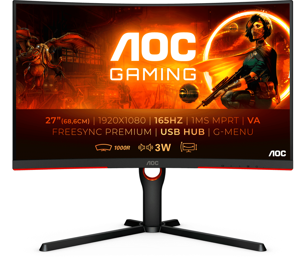 Diagonal details: 27 , screen matrix type: *VA, max. resolution: 1920x1080, gaming monitor, response time: 1 ms, aspect ratio: 16:9, brightness: 250 cd/m2, curved screen, video interfaces: DisplayPort input , HDMI input x 2, screen coverage