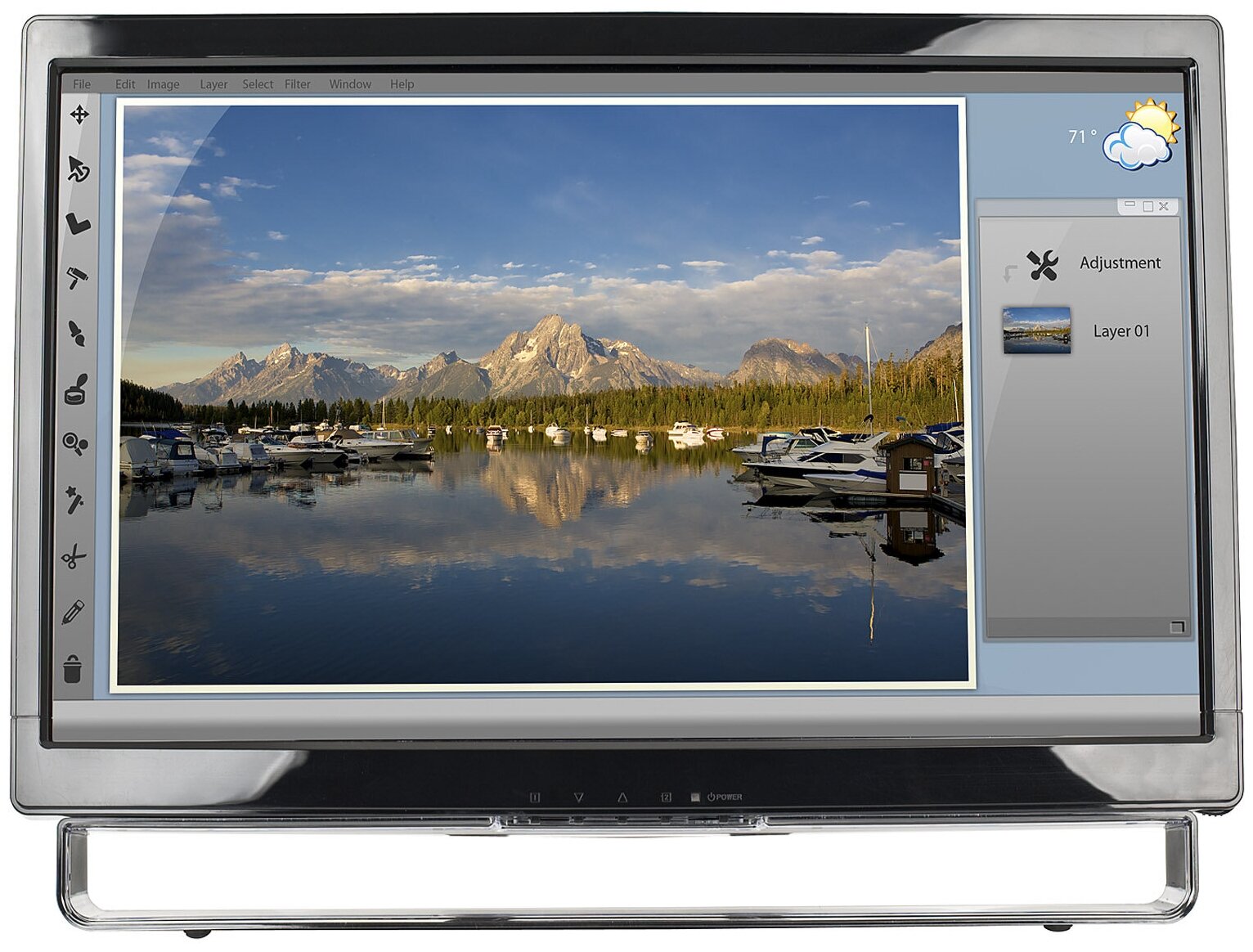 Built-in speakers, touch screen