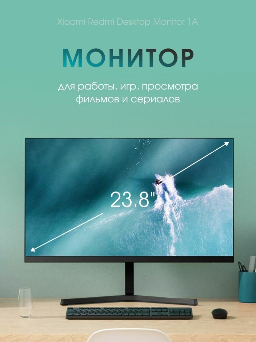 Diagonal details: 23.80 ", screen matrix type: IPS, max. resolution: 1920x1080, response time: 6 ms, aspect ratio: 16:9, brightness: 250 cd/m2, features: Flicker-Free backlight, video interfaces: HDMI input, VGA input