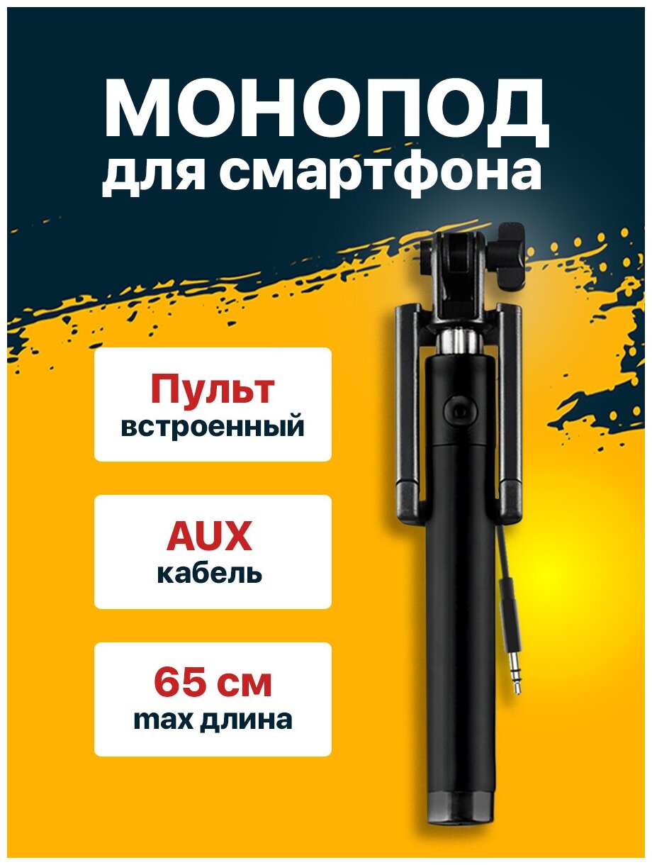 Monopod AMFOX S3 with AUX cable and built-in remote control, black / tripod for phone, stabilizer for phone, selfie stick for smartphone, holder with remote control for selfie, for photo and video