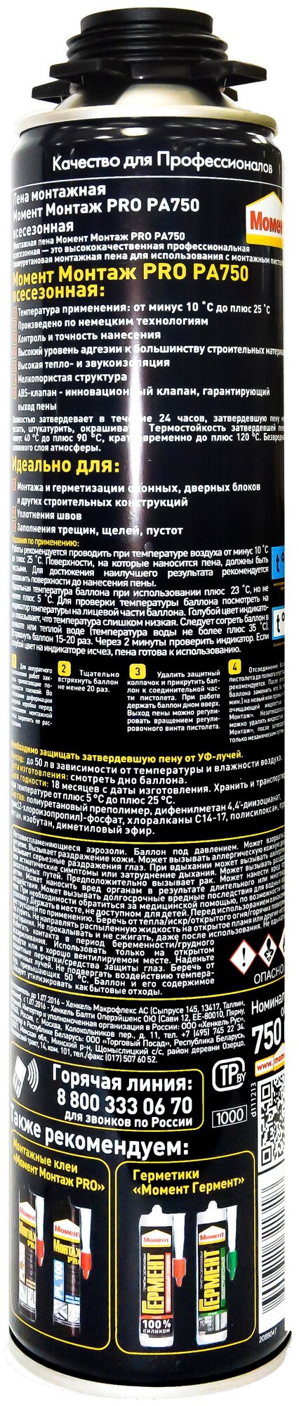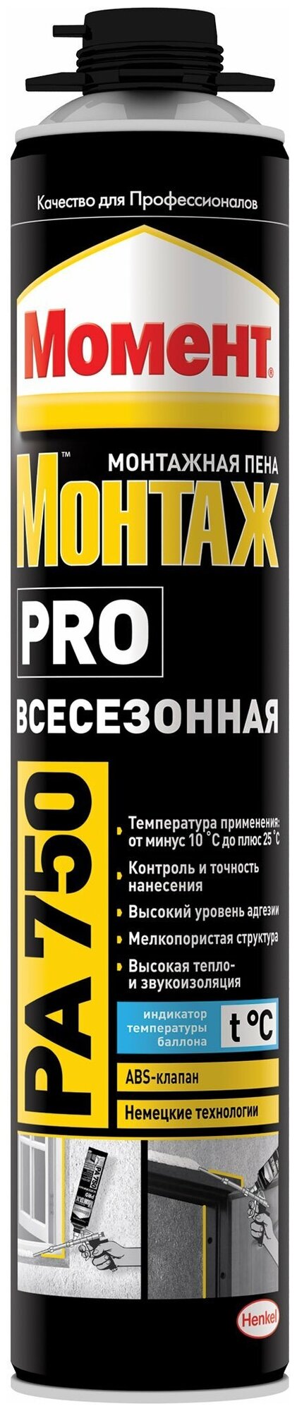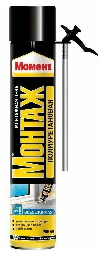 Type: polyurethane foam, volume: 750 ml, seasonality: all-season, method of release from the cylinder: gun, features: , fastening to the gun: thread, area of application: universal, drying time: 24 hours, flammability class: B3