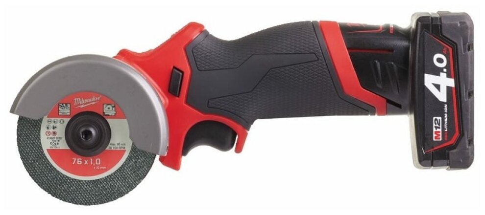 Subcompact multifunctional cutting machine Milwaukee M12 FUEL FCOT-0 - 1 pc., Milwaukee M12 B4 4.0 Ah battery - 1 pc., Milwaukee M12 B2 2.0 Ah battery - 1 pc., Milwaukee C12 C charger - 1 pc., case