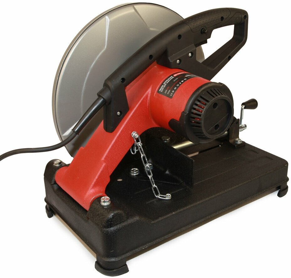 Electric saw assembled with frame and clamp, blade clamping screw key, blade clamping flange key, saw blade installed on the electric saw