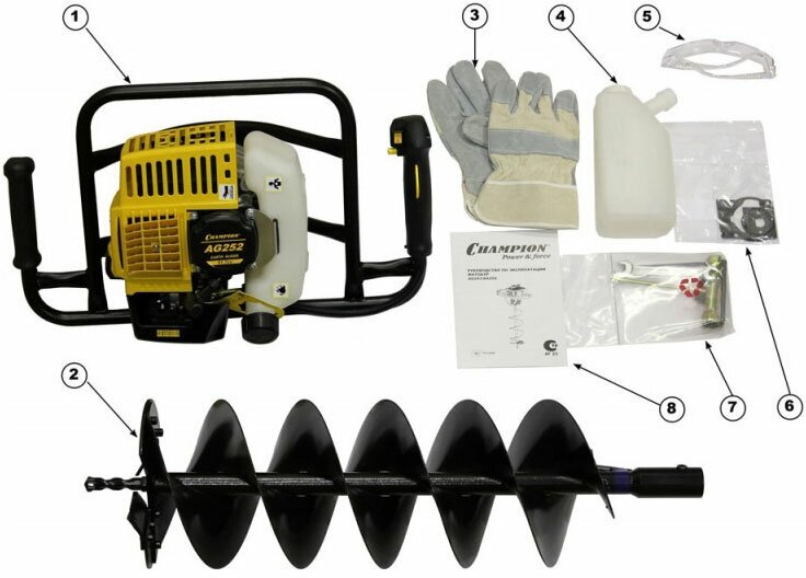 Power: 1.46 kW, engine power: 1.99 hp, connection diameter: 20 mm, minimum drill diameter: 60 mm, maximum drill diameter: 250 mm, drilling surface: soil, auger included, weight: 9.20 kg