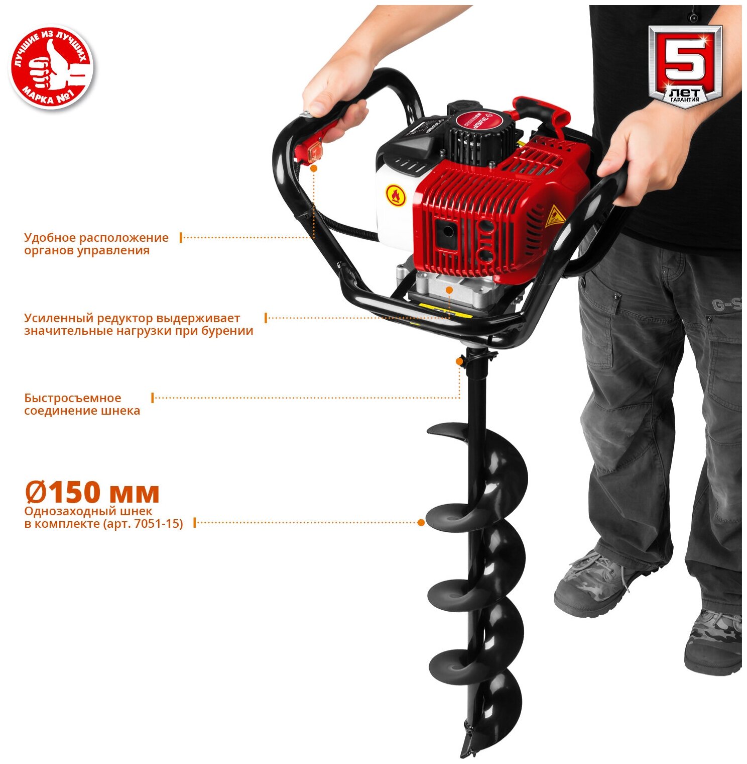 Power: 1.80 kW, engine power: 2.45 hp, connection diameter: 20 mm, maximum drill diameter: 200 mm, drilling surface: soil, ice, auger included, weight: 9.50 kg