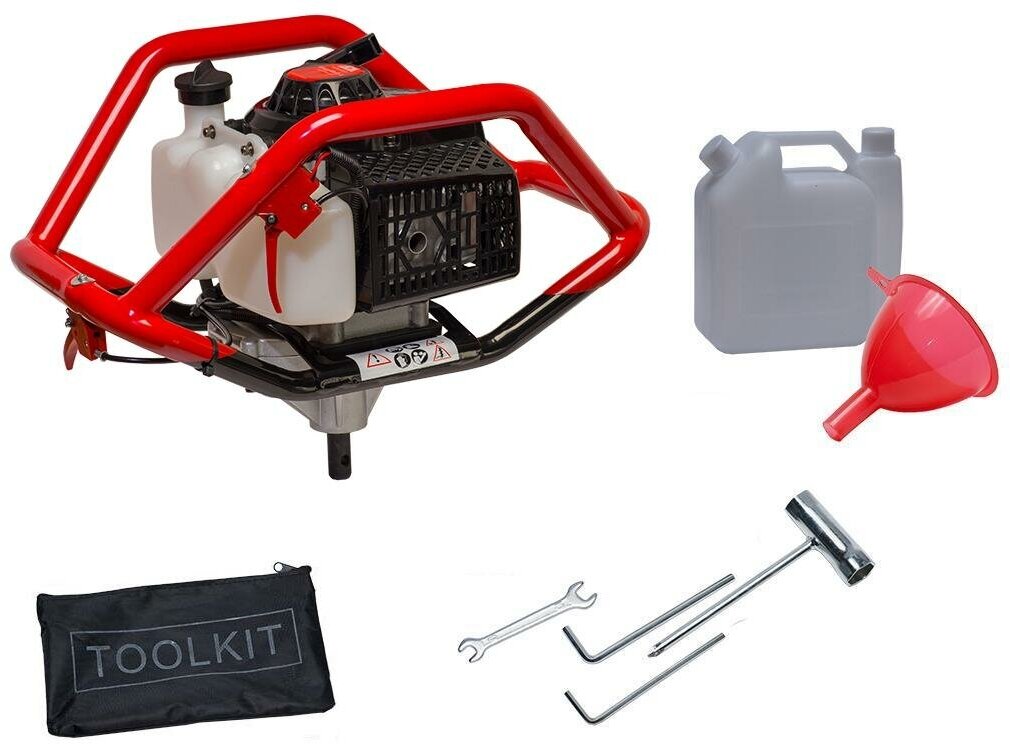 Description: Power: 2.40 kW, engine power: 3.26 hp, connection diameter: 20 mm, maximum drill diameter: 300 mm, maximum drilling depth: 80 cm, drilling surface: soil, auger included, weight: 9.50 kg