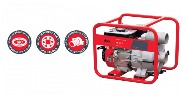 Recommended fuel - unleaded gasoline A-92, recommended oil - SAE 15W40; the maximum diameter of particles in the pumped liquid is 30 mm.
