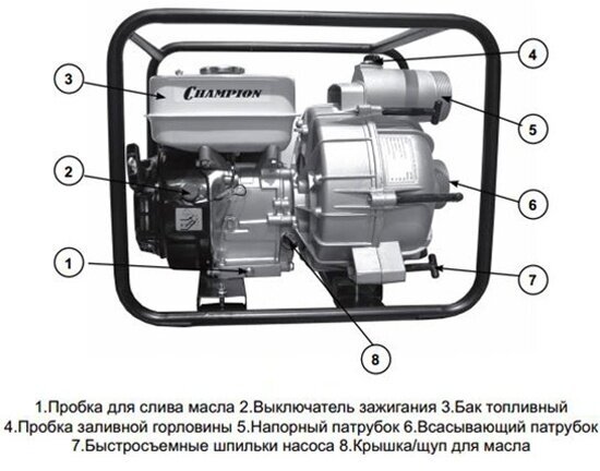 Engine type: gasoline, water quality: heavily contaminated, lifting head: 25 m, maximum performance: 1300 l/min, outlet diameter: 80 mm, inlet diameter: 80 mm, engine displacement: 208