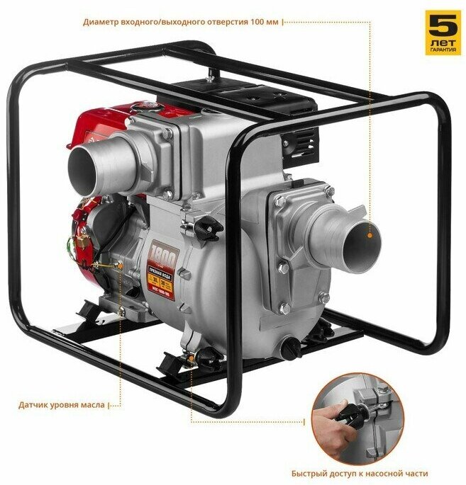 Water quality: medium contaminated, maximum productivity: 1800 l/min, outlet diameter: 100 mm, inlet diameter: 100 mm, engine volume: 420 cm³, engine stroke: 4-stroke, suction height