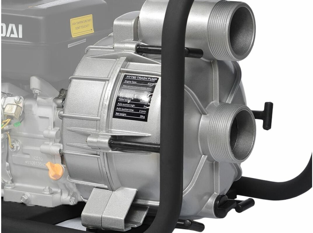 Description: Engine type: gasoline, water quality: heavily contaminated, lifting head: 20 m, engine manufacturer: Hyundai, maximum performance: 917 l/min, outlet diameter: 80 mm, inlet diameter