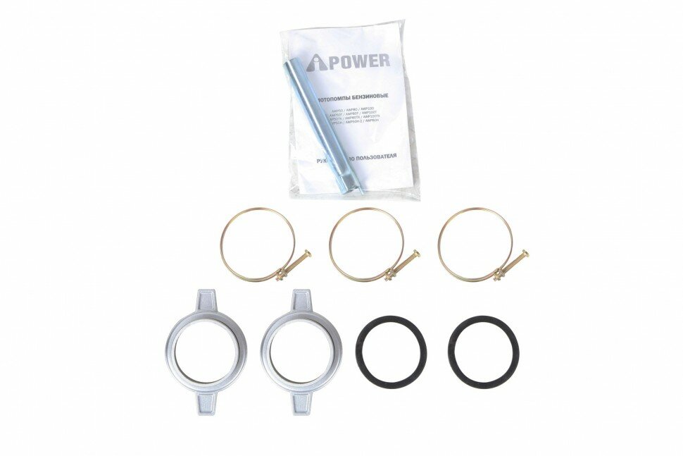 Motor pump, spark plug wrench, o-rings, connecting flanges and clamps, metal filter