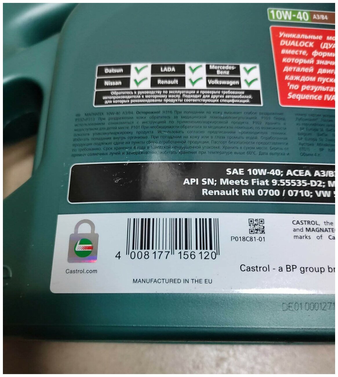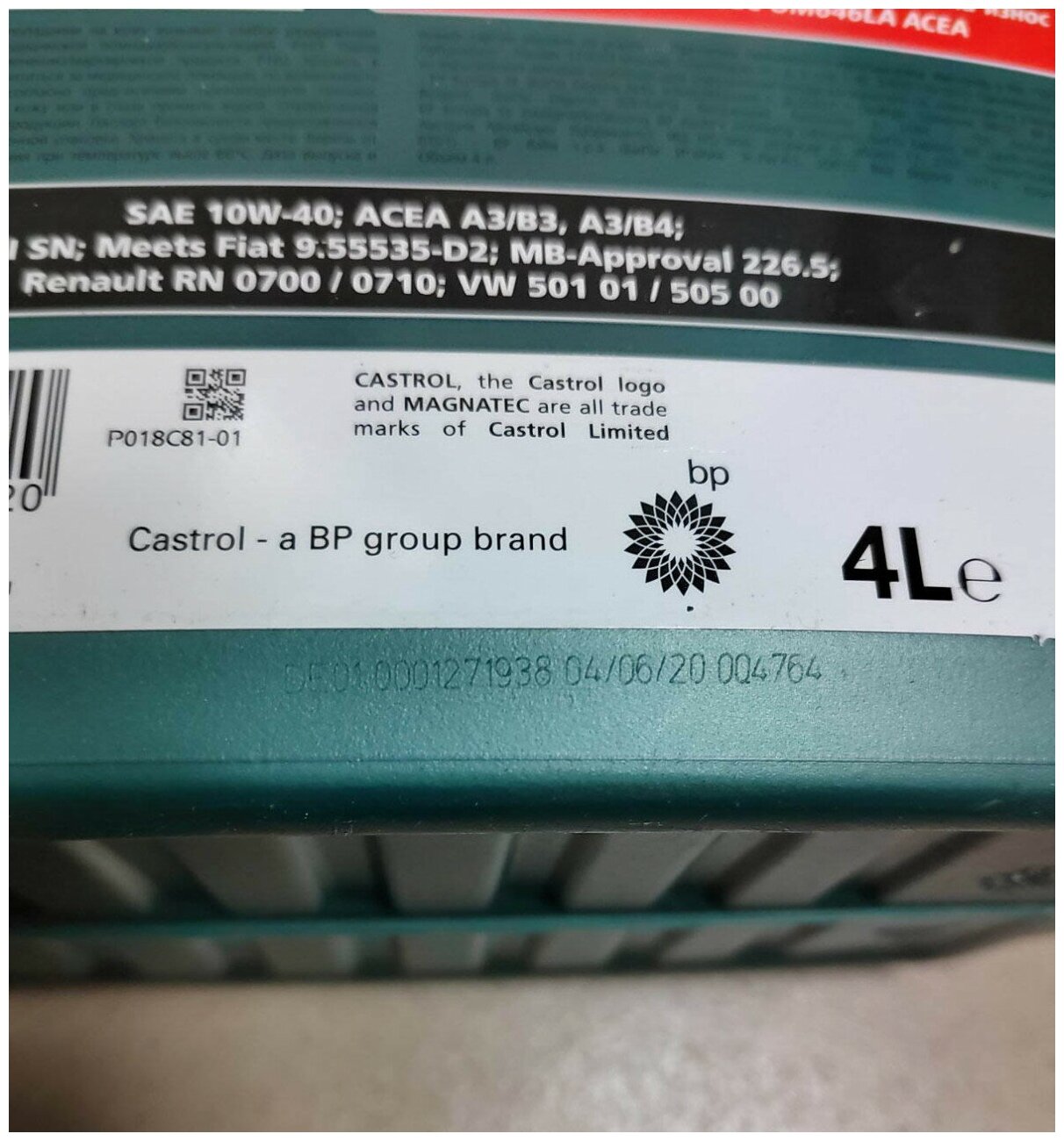 SAE viscosity grade: 10W-40, oil type: semi-synthetic, synthetic, fuel type: gasoline, API standard: SL, engine type: four-stroke