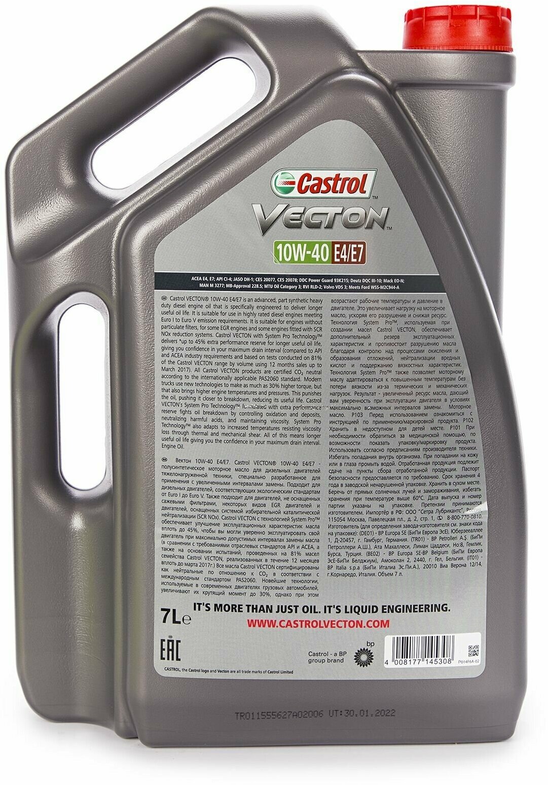 Description: SAE viscosity grade: 10W-40, oil type: semi-synthetic, synthetic, vehicle type: trucks and special equipment, fuel type: gasoline, diesel, API standard: CI-4, SL, ACEA standard: E4, E7, OEM approvals: Caterpillar ECF-2, Cummins CES 20077, Cummins