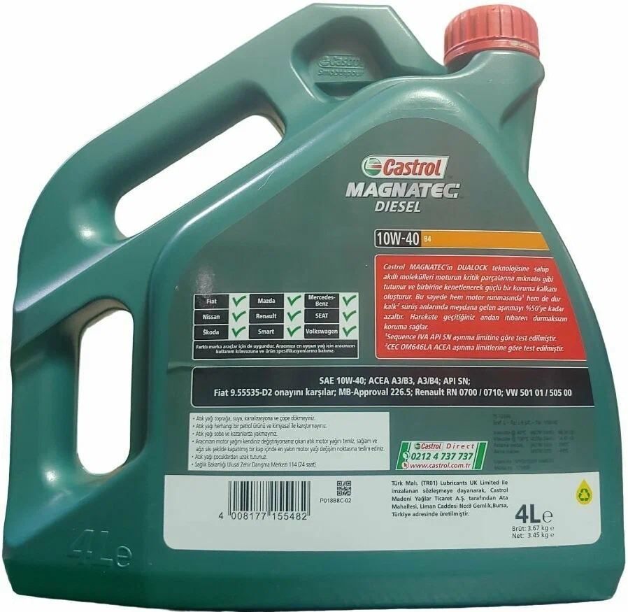 Description: SAE viscosity grade: 10W-40, oil type: semi-synthetic, synthetic, vehicle type: passenger cars, fuel type: gasoline, diesel, API standard: SN, ACEA standard: 0, A3, B3, B4, OEM approvals: FIAT 9.55535- D2, MB 226.5, VW 501.01, VW 505.00, Renault RN 0700|R