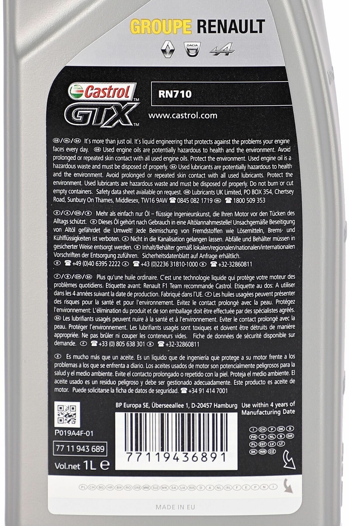 Description: SAE viscosity grade: 5W-40, oil type: synthetic, vehicle type: passenger cars, fuel type: gasoline, diesel, GasolineDiesel, API standard: SN, ACEA standard: A3/B4, A3/B3, A3B3B4, OEM approvals: Renault RN 0710, Renault RN0710, engine type: four