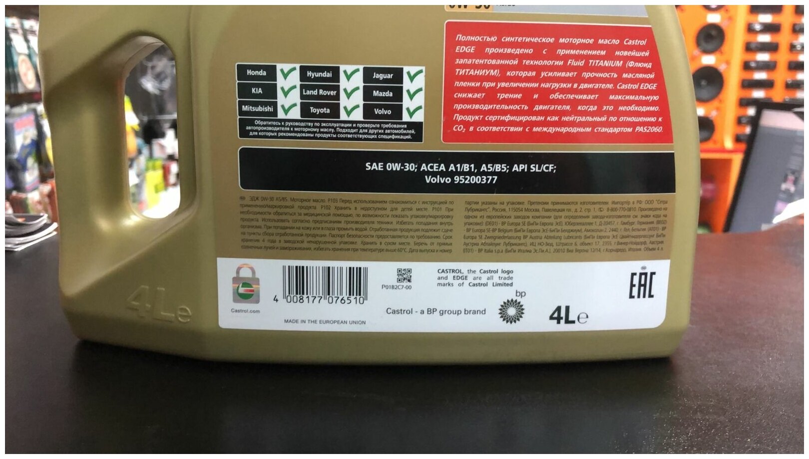 Synthetic motor Castrol EDGE 0W-30 A5/B5