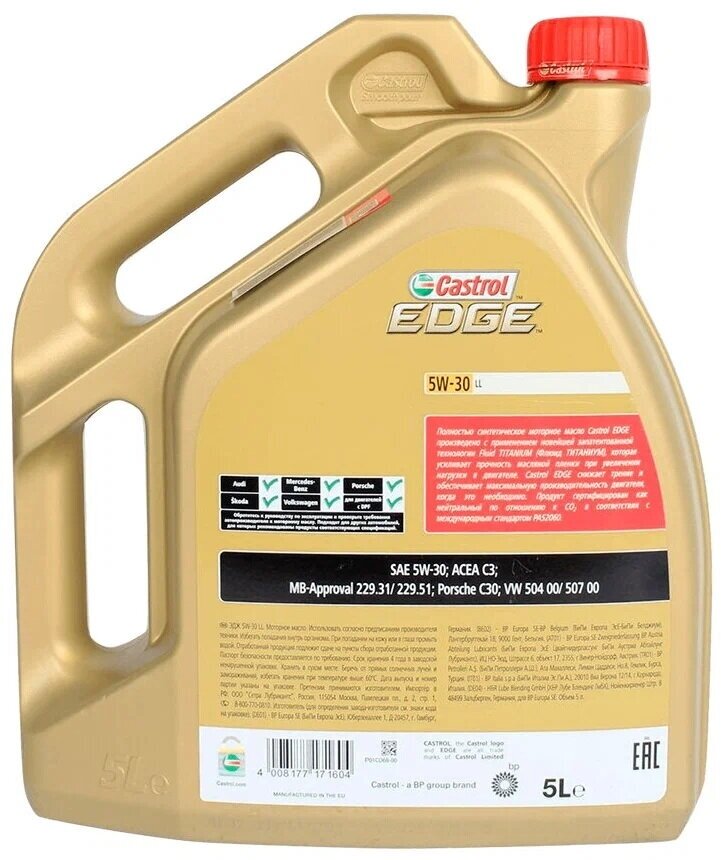 Description: SAE viscosity grade: 5W-30, oil type: synthetic, synthetic, vehicle type: passenger cars, fuel type: gasoline, diesel, methane, propane, Gas, API standard: CF, SL, SM, SN, ACEA standard: C3, C3, OEM approvals: BMW Longlife-04, GM-LL-A-025, GM-LL-B-02