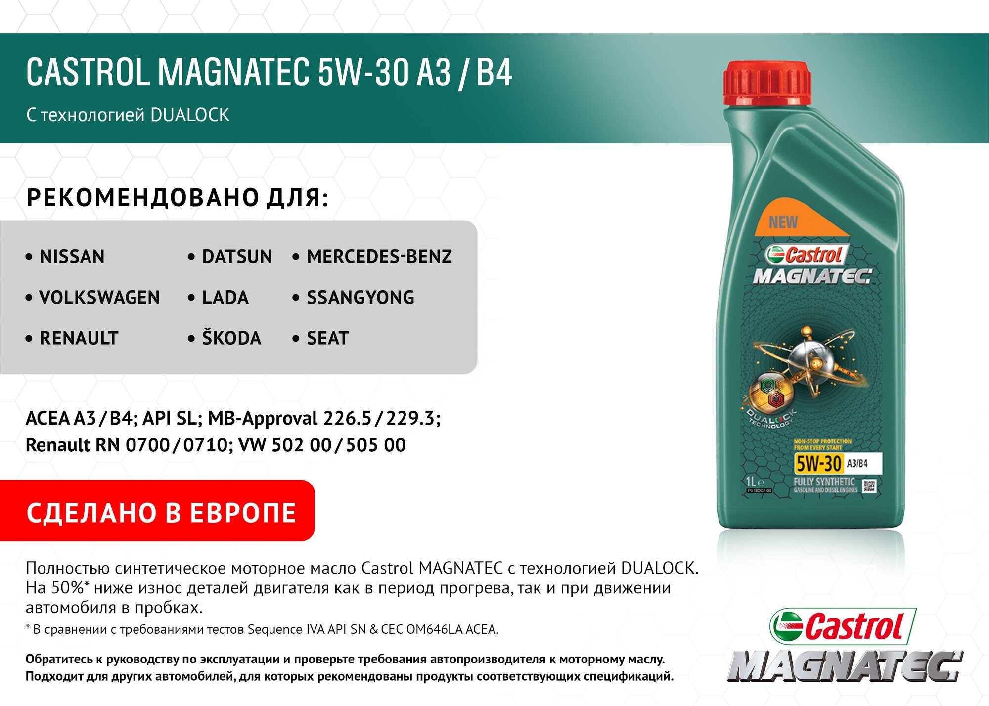 OEM Approvals: BMW Longlife-01, MB 229.3, Renault RN 0700, Renault RN 0710, VW 502.00, VW 502.00/505.00, VW 505.00, Ford WSS-M2C913-C/WSS-M2C913-D, GF-5