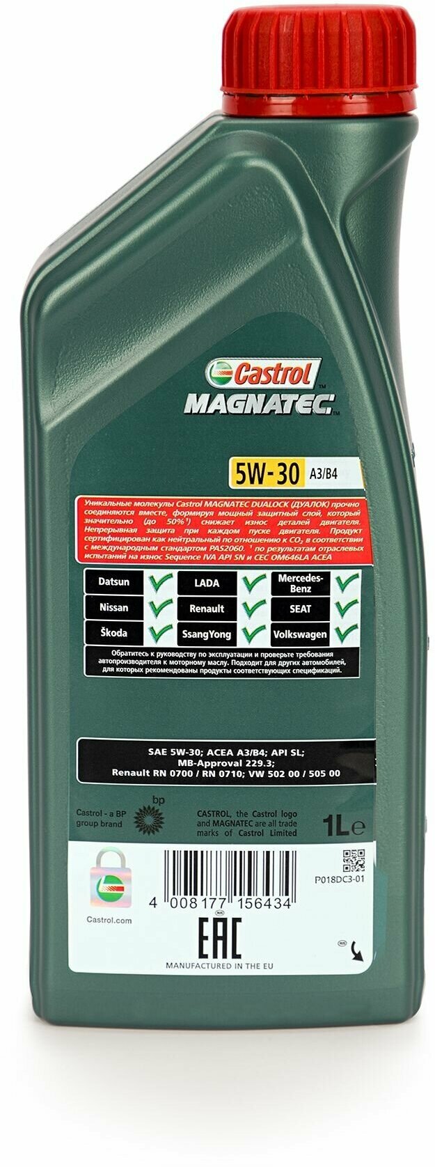 Description: SAE viscosity grade: 5W-30, oil type: synthetic, vehicle type: passenger cars, fuel type: gasoline, diesel, API standard: CF, SL, SN, ACEA standard: A3/B4, A3/B3, A3, A5, B4, OEM approvals: BMW Longlife-01, MB 229.3, Renault RN 0700, Renault RN 0710, VW 5