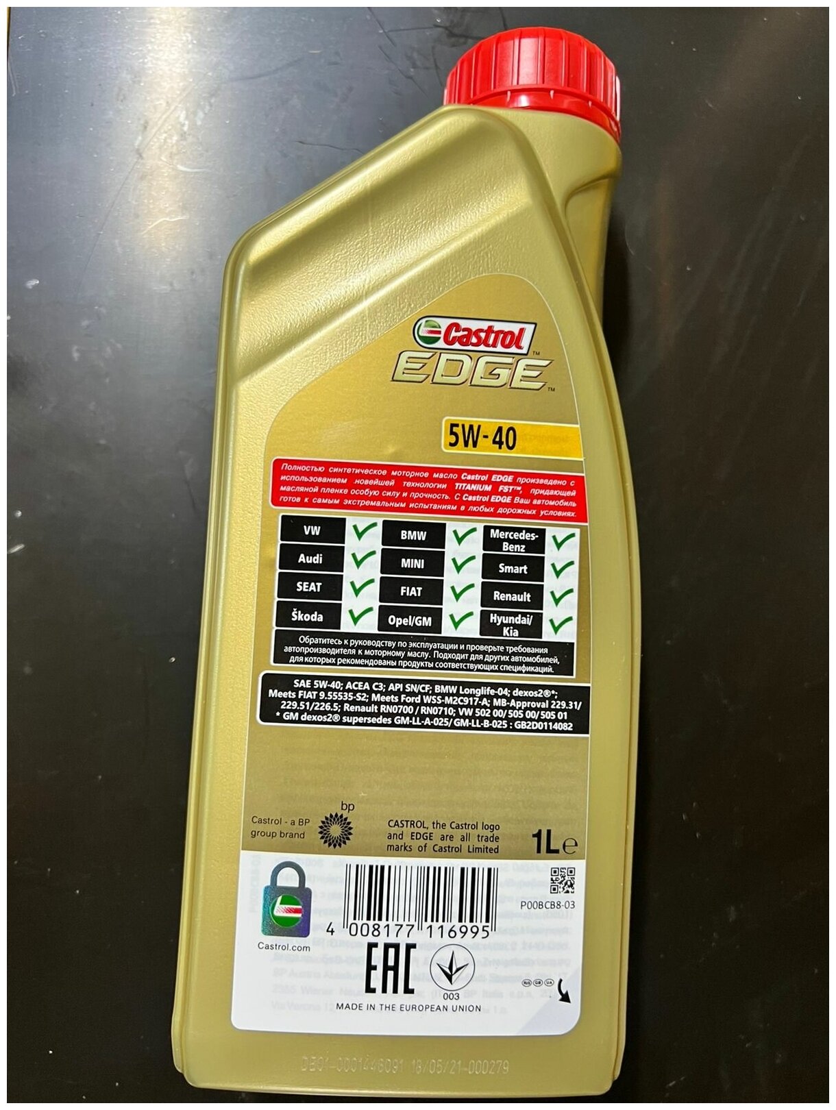 SAE viscosity grade: 5W-40, oil type: synthetic, fuel type: gasoline, diesel, API standard: CF, SN+, ACEA standard: C3, OEM approvals: BMW Longlife-04, FIAT 9.55535-S2, Ford WSS-M2C 917 -A, GM Dexos 2, GM-LL-A-025, GM-LL-B-025, MB 226.5, MB 229.31, MB 229